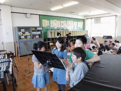 これまでグループでリズムづくりをし,練習を重ねてきました。いよいよ発表会です。重なるところや追いかけるところが上手にできるかな?ドキドキ