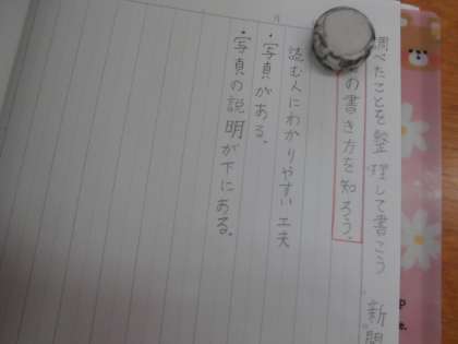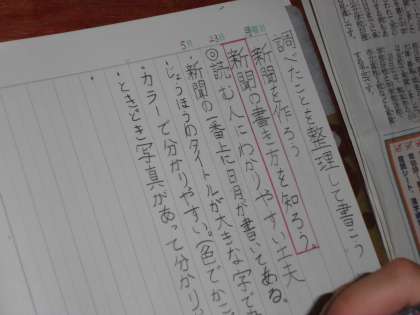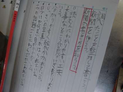 見つけた工夫を使って,自分たちで新聞を作ります。これから,何についての新聞にするのかグループで話し合っていきます。