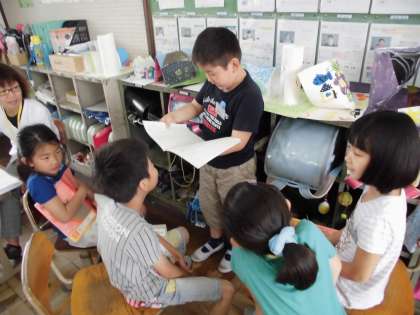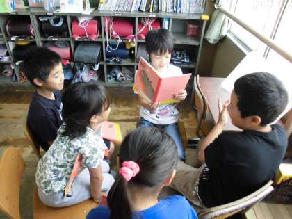 この学習では,文章を段落ごとに読み,その後に自分の考えをもって作りたいこまをグループのみんなに発表するという活動を行いましした。子どもたちからは「空飛ぶこま」「戦いごま」「ずっとまわり続けるこま」などユニークなこまをたくさん紹介していました。最近クラスでは,グループで交流するときに,司会を立て,司会カードをもとに子どもたちが話し合いを進めています。