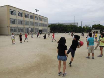 今日のみんな遊びは,王様ドッヂです。みんなで楽しく遊ぶことができましたね。