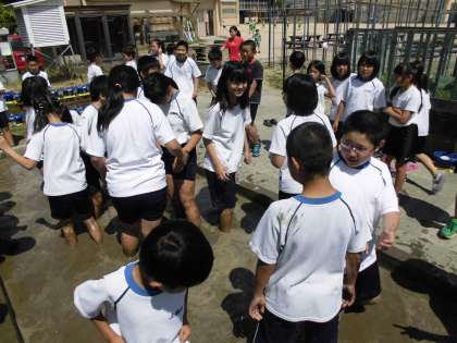 みんなで土をふんでいくと,思っている以上に足をとられていきます。これがなかなか難しかったですね。