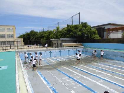 きれいになったことがよく分かります。みなさんのおかげでとってもプールがきれいになりました。ありがとうございました。