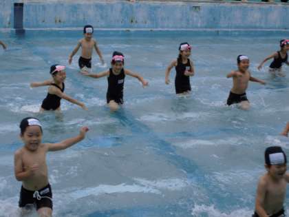 水に慣れるために,水の中を歩いたり,走ったりしています。