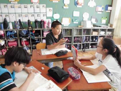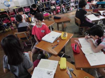 国語の学習では,聞くことを大切にする学習をしています。友達にインタビューをして,そのことを他の友達伝えていきました。もう一人は,記録をとっていきます。それを輪番でまわしていきました。