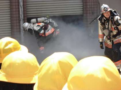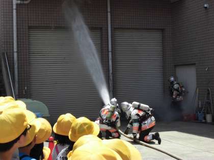 消火訓練にみんなくぎづけでした!!最後に質問タイム!!聞きたいことがいっぱいありました!!