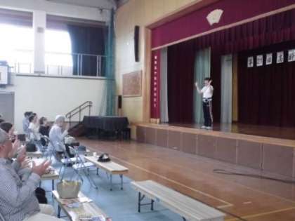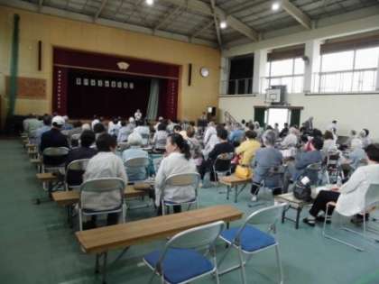 今日は,高齢者の集いがありました。たくさんの地域の方々が体育館へ集まってくださいました。警察の方からお話を聞いたり,ヘルスピアの方から健康体操を教えていただいありしました。みなさん,とても熱心にお話を聞かれたり体操されたりしていました。