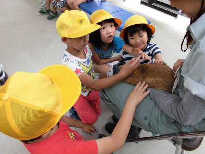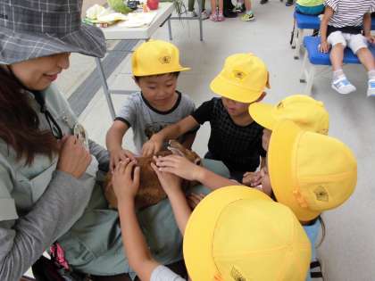 子どもたちは「かわいい」と言いながら,動物をさわっていました。