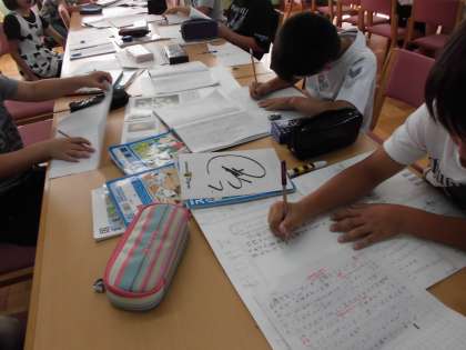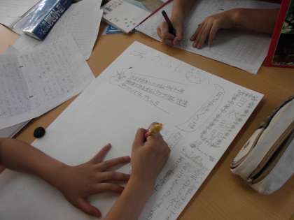 クラスのみんなにアンケートをとった結果も集計し,わかったことなども記事にしています。いよいよ,下書きをした後,新聞に書き始めました。