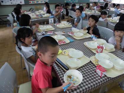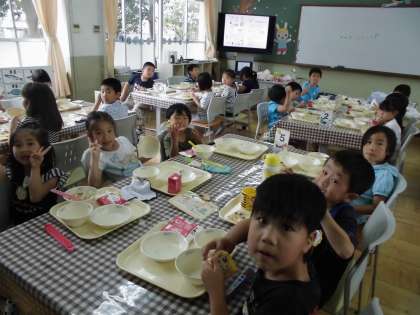 ランチルームで給食を食べました!!