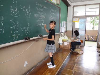 前へ出て,黒板を使って上手に説明できる子がふえてきました。