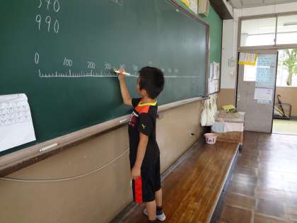 1000までの数のかきかたや,数直線をつかって数を考えることなどをしています。