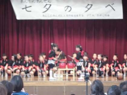 今日は,18:00から上鳥羽小学校で「七夕の夕べ」が行われました。地域の方々や子どもたちの笹飾りを校庭や体育館にとてもきれいに飾られました。