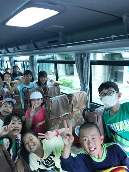 バスの中はごらんの通り,みんなの笑顔がこれからの活動の源です。