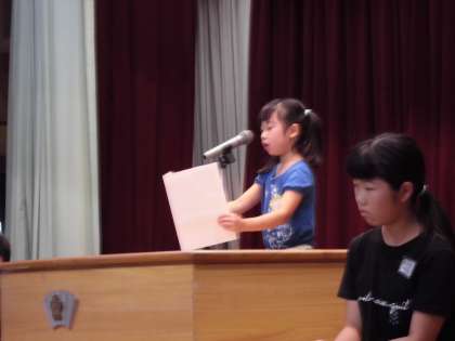 全校児童の前で,堂々と発表することができていました。