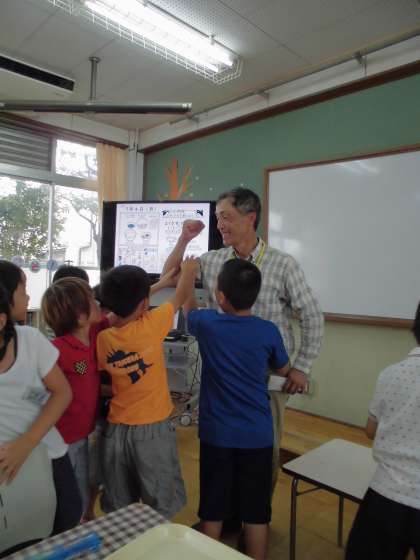 今日は,ランチルームで用務員の桃井さんと一緒に給食を食べました。いつもとは違う場所で食べることが嬉しいのか,給食の時間を楽しみにしていました。また,給食クイズや桃井さんからのなぞなぞがあり,楽しんで給食を食べることができました。