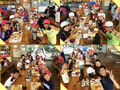 3日目になり,山の家での生活にもだいぶ慣れてきました。元気いっぱいの「朝食タイム」です。朝からバイキングをおいしくいただきました。今日はこの後,交流の森へ1泊2日で出かけます。