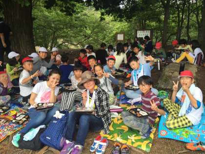 ハイキングでは,今日ボランティアで来て下さったPTAさんたちと一緒に昼食をとりました。ハンバーグ弁当,とてもおいしかったです。