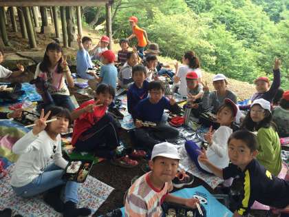 みんなの顔はニコニコです。男女がとても仲良く,まとまっています。
