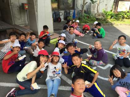 ハイキングを学年のみんなで頑張ったので,賞状がわりのアイスクリーム。一生懸命に活動した後は,心も体も清々しいものですね。