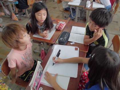 理科の学習でゴムの伸ばし方をかえて,車の動き方がどのように変わるのかを実験しました。グループのみんなで調べ方を考え,実際に走った距離をメジャーではかり,結果を記録していきました。