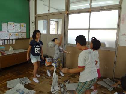 図画工作で新聞遊びをしました。子どもたちで新聞でどんなことができるかを考えながら,いろんな遊びをしました。みんなとてもとても夢中であそんで楽しんでいました!