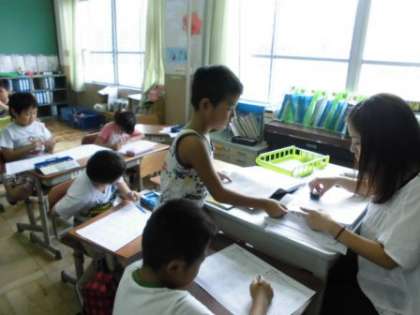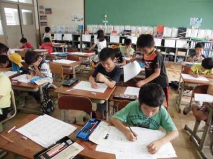 2年生は,筆算の練習プリントにチャレンジしていました。くり上がりやくり下がりに気を付けて,慎重に計算していました。