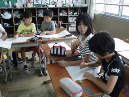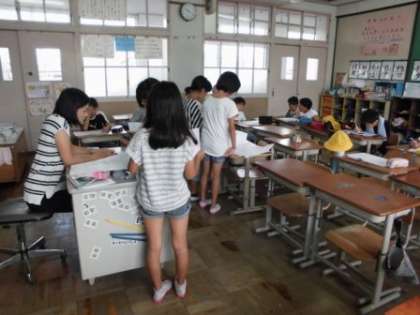 4年生も大変集中して学習に取り組んでいました。たくさんのプリントの問題をどんどん解いたり友だちと教え合ったり。さずが4年生です。
