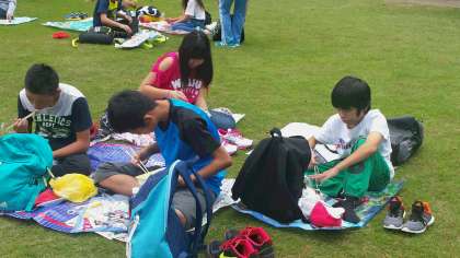 尼御前に到着しました。心配していた天候ですが,晴れ間も見えるほどでなによりです。お昼ご飯は,きれいな景色を見ながらいただいています。