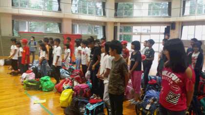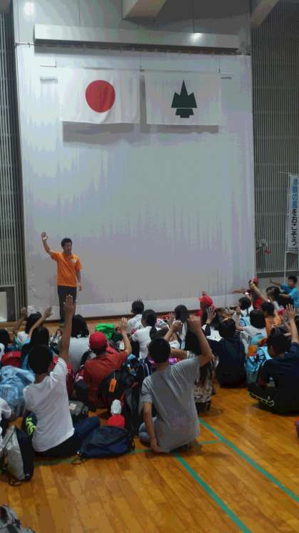 立山青少年自然の家に到着しました。これから3泊する自然の家の方々にしっかり挨拶をしましたか?楽しい思い出がいっぱいできるよう頑張ってくださいね。