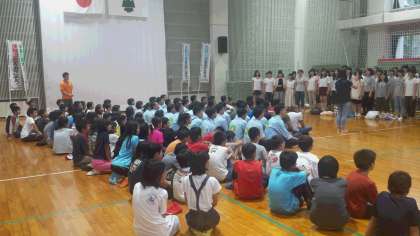 プレイホールで夕べの集いが始まりました。大勢が集まっての集いは迫力がありそうですね。