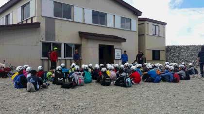 やりましたね,一の越到着。みんな元気そうでよかったです。青空が見えていますね。さあ,これからがメインイベント「雄山登頂」。期待していますよ,頑張って!!!