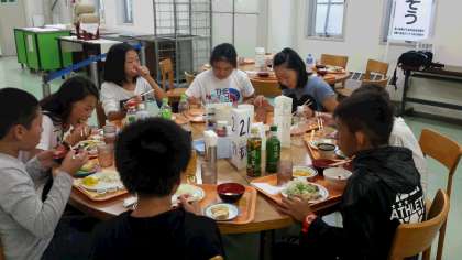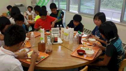 朝の集いが終了し,朝食です。称名滝の見学をはじめ,たくさんの活動があるのでモリモリ食べてください。