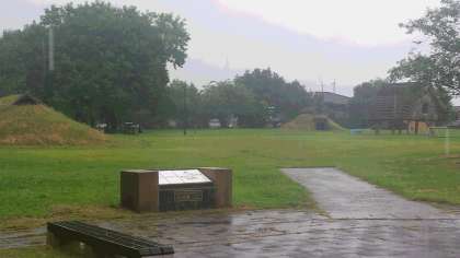 北代縄文広場にやってきました。雨は降ったりやんだりしています。縄文広場ではコースター作りに挑戦します。
