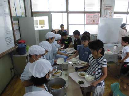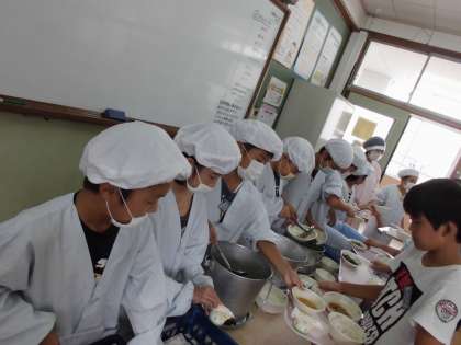 さすが4年生!給食当番も当番ではない人もスムーズに早く準備することができました。