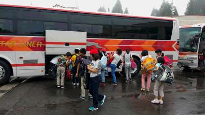 3泊4日の間,お世話になった立山青少年自然の家ともお別れです。所員の方々には本当にありがとうございました。子どもたち一人ひとりが,たくさんの思い出を作ることができました。