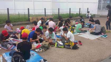 徳光サービスエリアで昼食です。今回の宿泊学習で,みんなで一緒に食事をするのは,この昼食が最後です。みんなで仲良く食べましょう。