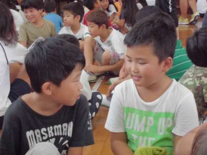 運動会のたてわりメンバーが集まり,自己紹介をしたり,みんなで新聞を使って簡単なゲームをしたりしましました。