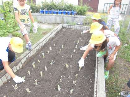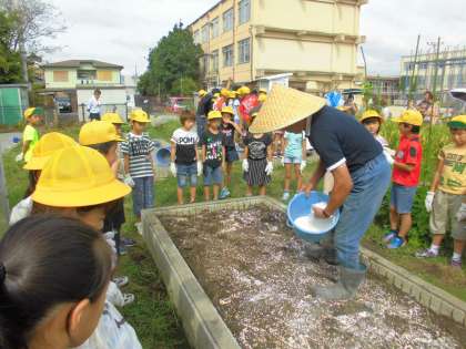今日は,1・2時間目にねぎの定植を行いました。ねぎの苗の植え方や,旬の時期など教えてもらいました。ねぎの苗を植える時は,土の上に置く程度で土をかぶせ過ぎないことや,苗を束ごと植えることなど知ることができました。