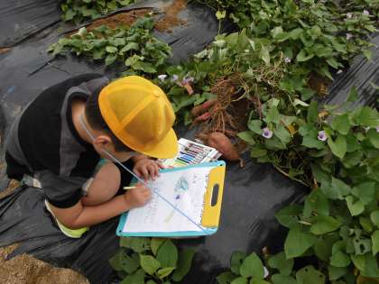 サツマイモのうす紫色の花も咲いていて,とてもきれいでした。