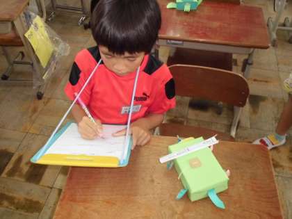 図工の学習で,お話の絵や工作を鑑賞しました。