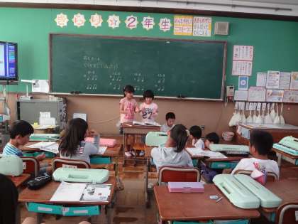 自分で作ったリズムをみんなに紹介したり,ペアでリズムをつなげて発表したりしました。
