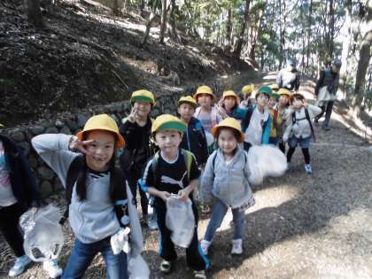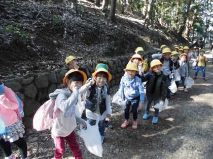 どんぐりや松ぼっくりを探しながら,大吉山を登りました。