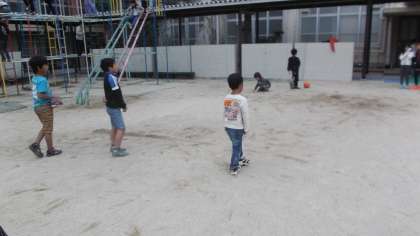 4くみ,教室に6年生の子ども達が来てくれました。中間休みは運動場で元気に遊んでいます。
