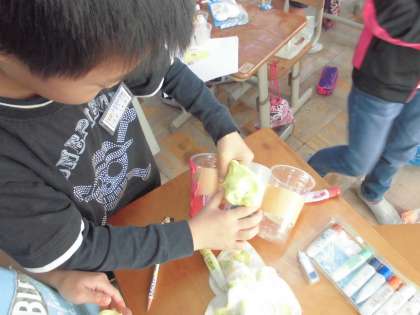図工の学習で,空き容器に粘土や飾りをつけて,世界に一つしかない特別な小物入れになるように1人1人イメージを膨らませながら作りました。