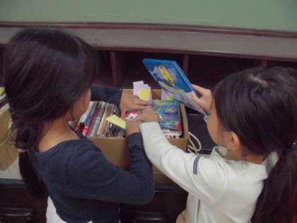 5時間目に,1組2組のみんなで図書室に置いてほしい本を選びに行きました。本を読むことが大好きな子どもたちは,たくさんある本にワクワクしながら楽しそうな様子でした。