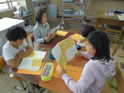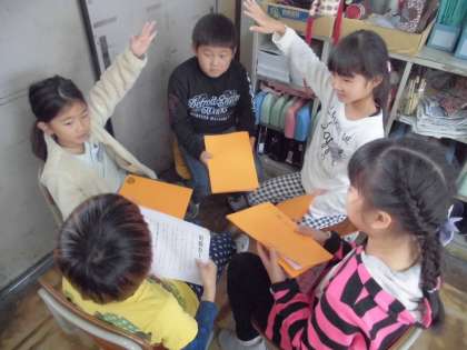 学習を始めたころから,このお話が大好きな子どもたちは,国語の時間になると「。読みしたい。」と話したり,リズムよく読むところが好きで,暗記して言っていたりと意欲的に学習している姿がありました。最後の学習では,自分が読み進めてきた昔話や民話をグループの友だちに紹介しました。