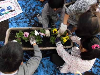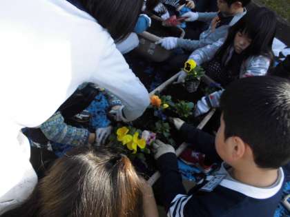 花をいためないように優しく扱いました。学校が美しくなりますように。