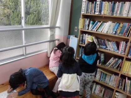 本を探すとき,番号や作者の頭文字などで探します。子どもたちは,本探しクイズに夢中でした。