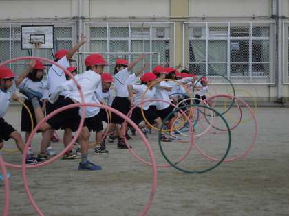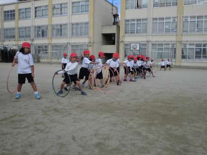 フラフープをどのくらい遠くまで転がせるか試しました。