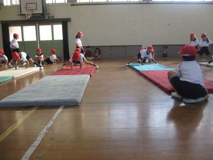 これから「前転」に挑戦します。